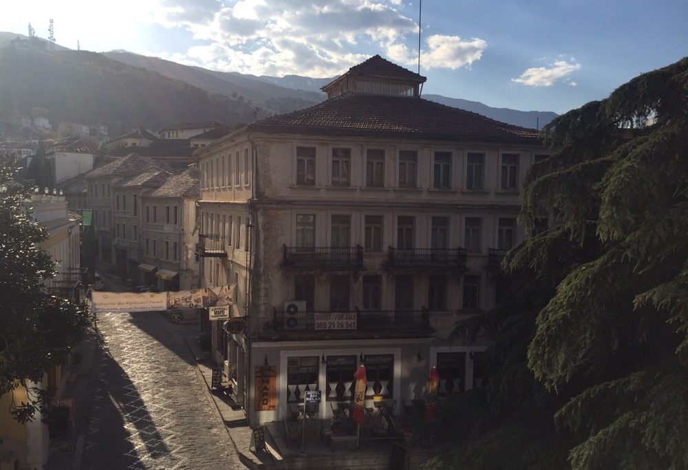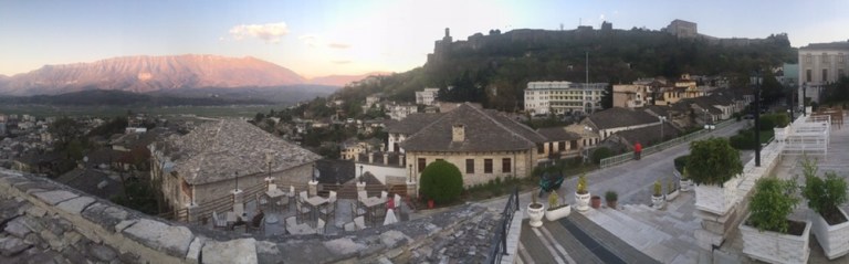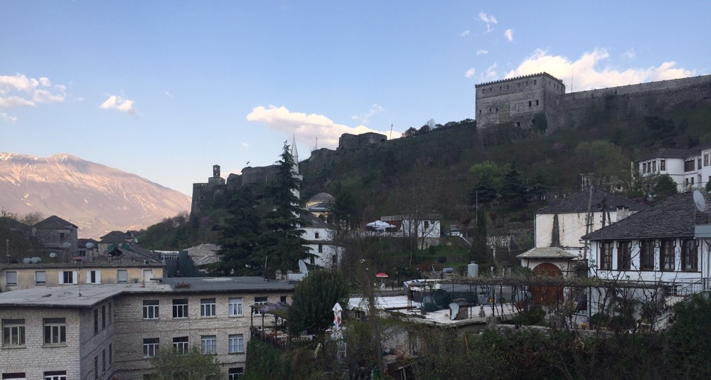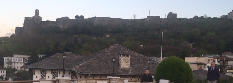 Noch 30 Kilometer im Tal gen Norden. Wir erreichen unser Tagesziel Gjirokastër (https://de.m.wikipedia.org/wiki/Gjirokastra) kurz vor 17 Uhr. Einchecken im Hotel am Anfang der Altstadt, direkt unterhalb der Burganlage. Ein paar Minuten relaxen und Aussicht geniessen.