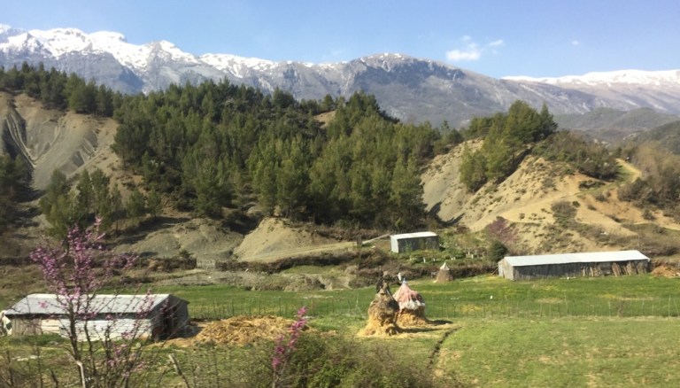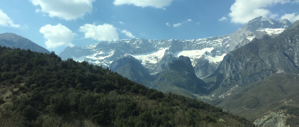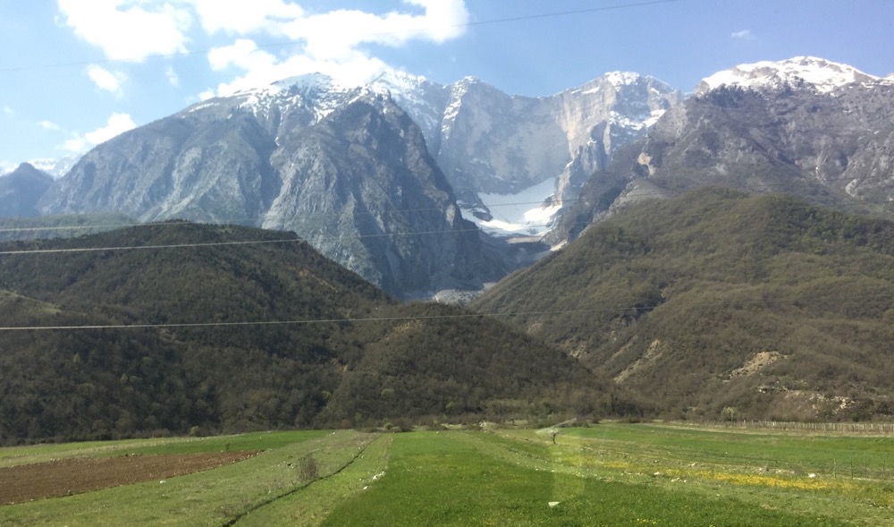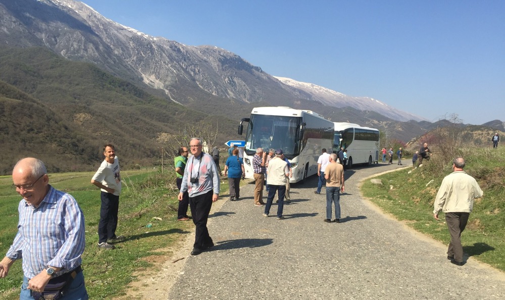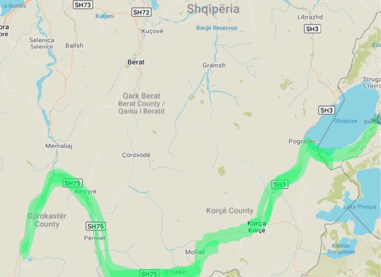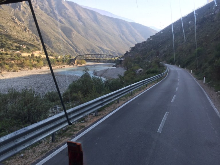 Strecke Gjirokaster im Südwesten Albaniens nach Ohrid am Ohridsee in Südwest-Mazedonien, 280 Kilometer über selten mal genügend breite Strassen, damit sich 2 grössere Fahrzeuge kreuzen können. Miserable löchrige Landstrassen, grösstenteils asfaltiert, ein ewiges bergauf-bergab. 12 Stunden Fahrtdauer inklusive einer 2-stündigen und mehreren kurzen Pausen.