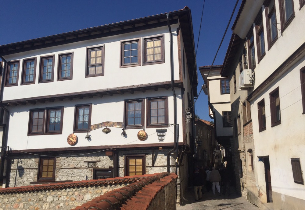 Um 19 Uhr zum gemeinsamen Abendessen im Hotel. Als Langsamesser werde ich regelmässig benachteiligt. Gewisse Reiseteilnehmer essen schon das 2. oder 3. Dessert während ich noch immer den leckeren Ohridsee-Aal geniesse, Henusode, so muss ich halt ohne Süsses ins Bett (bzw in den Samstagabend-Ausgang).