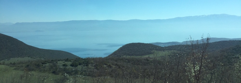 Von der albanischen Passhöhe auf 1100 m sehen wir noch ein letztes Mal den Ohridsee
