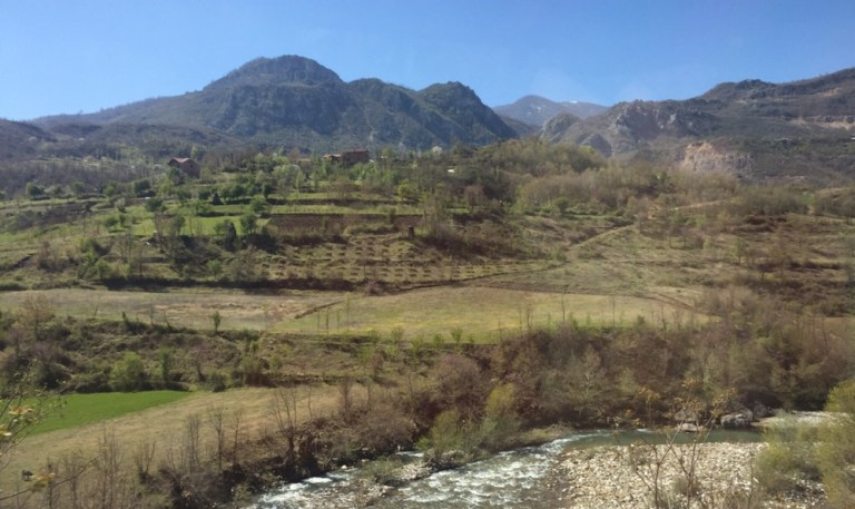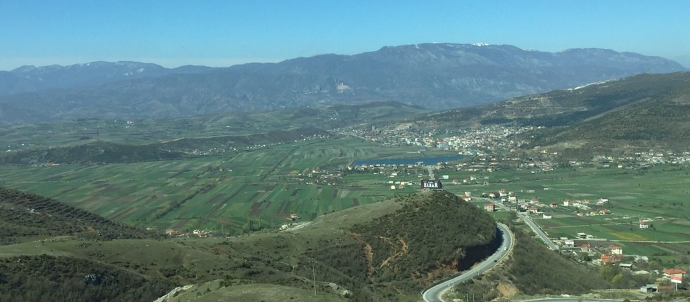 unter uns im Osten auf rund 800 m über Meer. Dann windet sich unser Bus in zahlreichen Serpentinen den Berg runter nach Përrenjas.