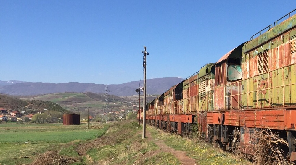 Hier ist einer der größten Lokfriedhöfe in Albanien, erwähnt in vielen Zeitungen. Mindestens 25 6-achsige Diesellokomotiven warten hier seit x Jahren auf ihre Verschrottung. Die Bahn fährt auch seit mehreren Jahren nicht mehr.