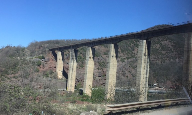 Nun geht die Fahrt weiterhin im Bus weiter, die Bahnlinie begleitet uns in Sichtweite, immer wieder über hohe Viadukte
