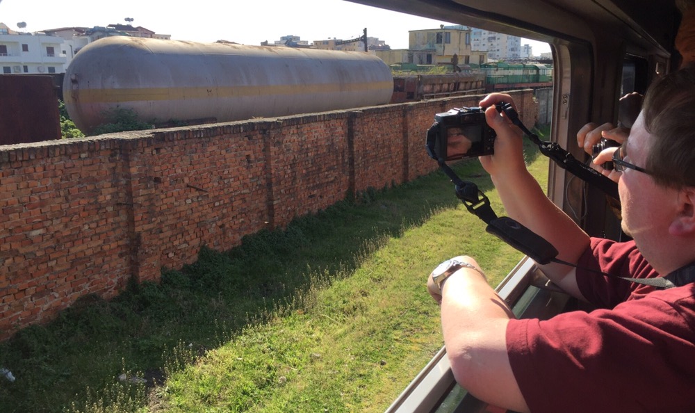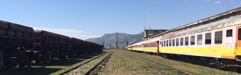 Dann fahren wir auch schon weiter in einem herrlichen, ständig weiter werdenden Flusstal. 12:40 Uhr treffen wir am Bahnhof von Elbasan ein. Ausgedehnte Bahnhofsbesichtigung,