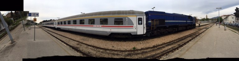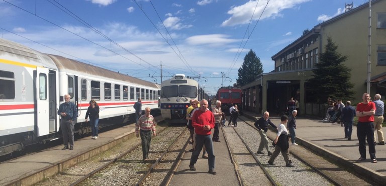 Ausgiebige Fotosession unseres Zuges; 1 dieselelektrische Lok (A1A)(A1A) aus amerikanischer GM-Lizenz in Slowenien gebaut und je ein Wagen 1., und 2.Klasse und ein Speisewagen.