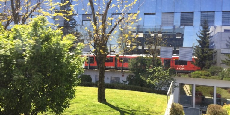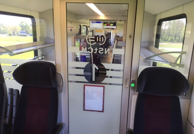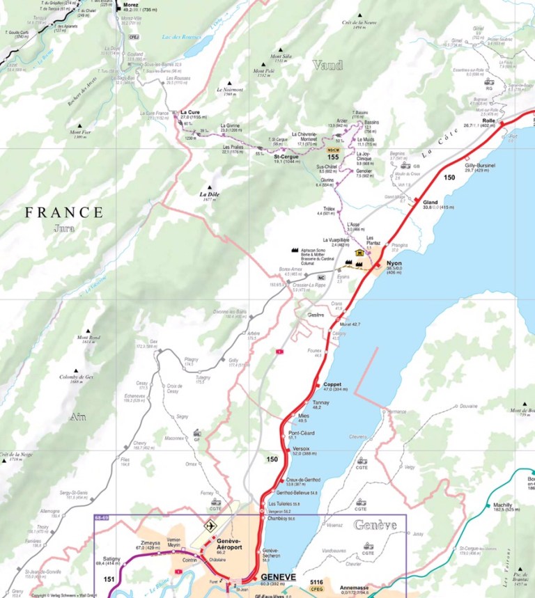 nach La Cure an der Grenze zu Frankreich und sofort wieder zurück nach Nyon. Kleine Schiebefenster erlauben hin und wieder eine Foto ohne störende Spiegelung zu schiessen.