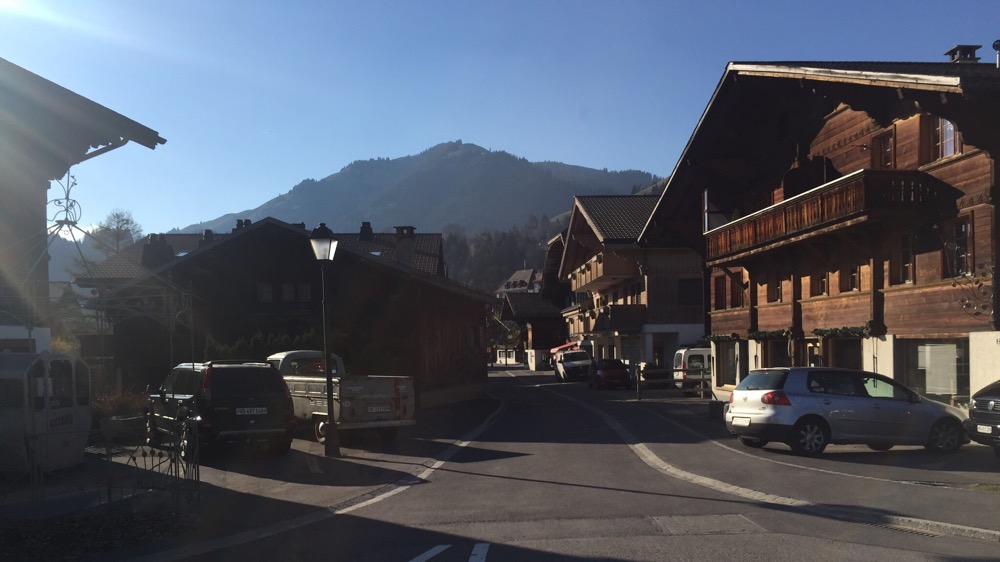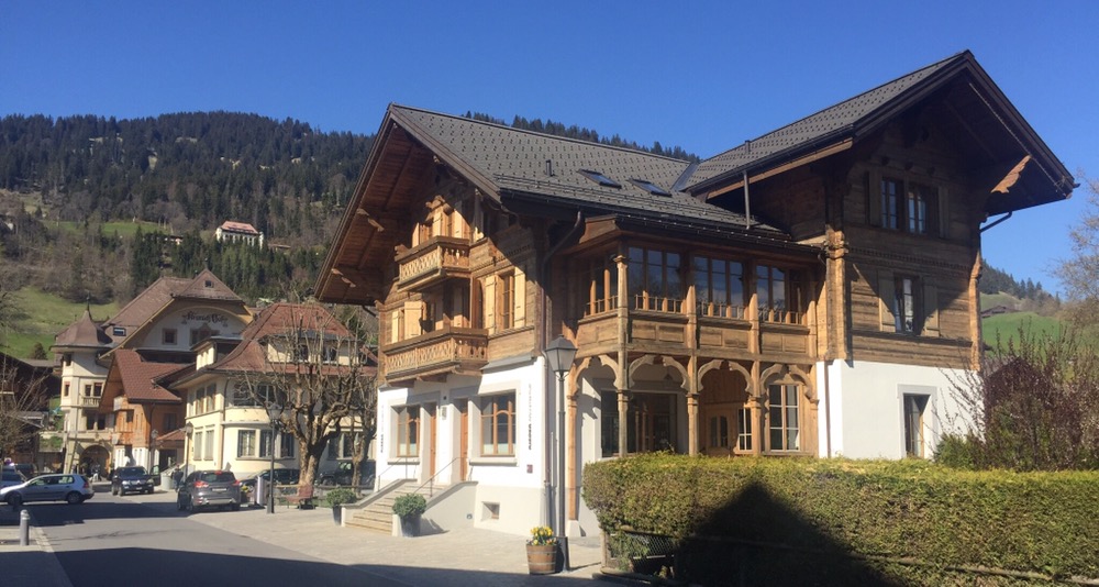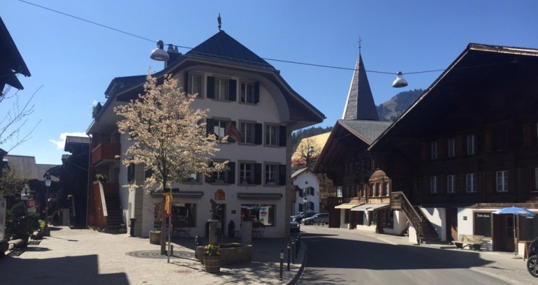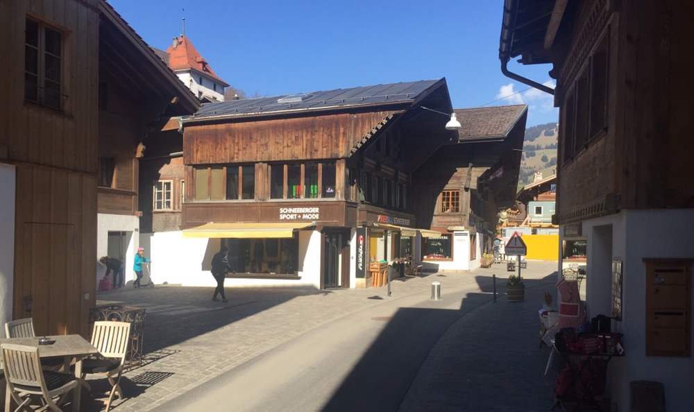 Kaum ausgestiegen begrüsst mich schon ein mir bekannter Saaner. In der Bahnhofstrasse und auf der Dorfstrasse treffe ich auf weitere Saanerköpfe. Habe ein längeres Gespräch mit Leonie Müller-Gyger, die einen schönen Saanengeiss (GyBi) Geschenk- und Souvenirladen, mit von Saanerfrauen hergestellten Handwerksprodukten betreibt.