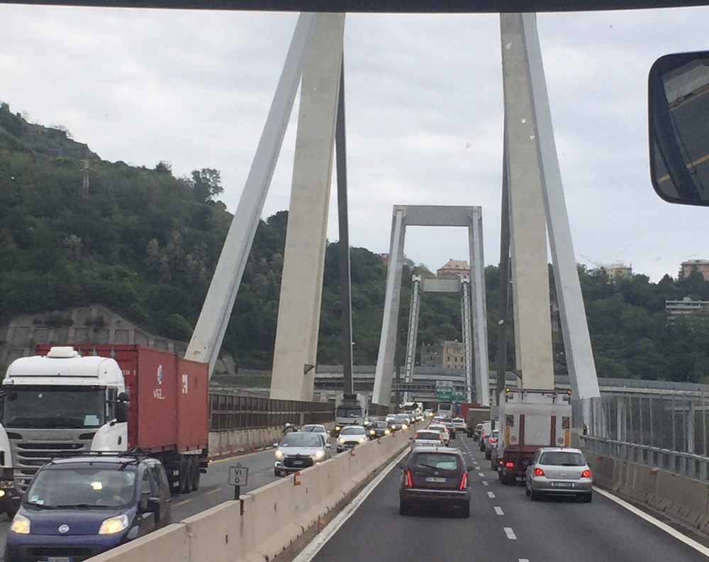 Interessante Fährt auf der Gebirgsautobahn runter an die ligurische Küste. Endlose Wälder blühender Akazien. Enge kurvige Stadtautobahn, kleine Staus.