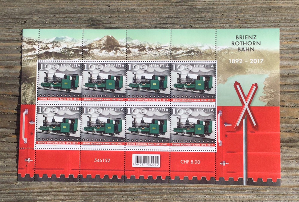 Nach dem Frühstück gehe ich ans Einpacken. Zwischendurch, fast hätte ich es vergessen, muss ich auf die Post. Heute ist der Erstausgabetag der neuen Briefmarken zum 125 Jahr Jubiläum der Brienz-Rothorn-Bahn.