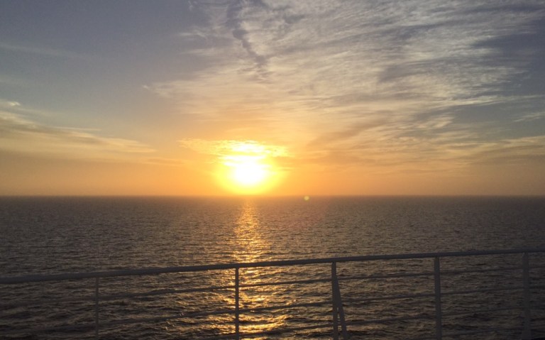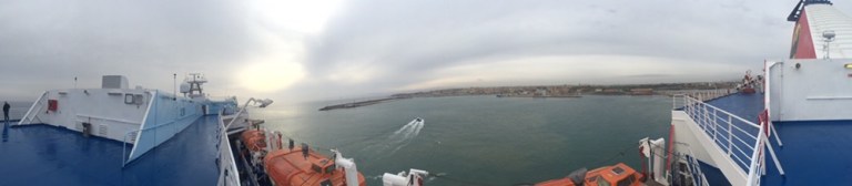 06.30 Frühstück, 07.40 Tagebuch online stellen, 07.50 läuft die Fähre in Porto Torres,