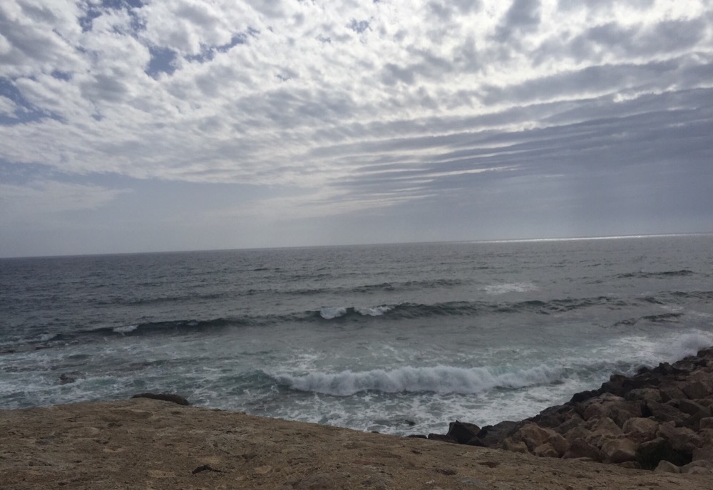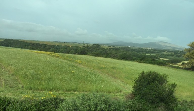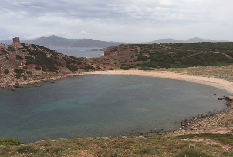 an der nördlichen Spitze von Sardinien (https://de.m.wikipedia.org/wiki/Sardinien) ein. Die Sonne versteckt sich hinter Nebelwolken, trotzdem ist es schön warm.