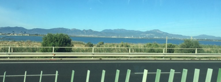 Auf gut ausgebauten Strassen fahren wir zur Stadt Cagliari hinaus,