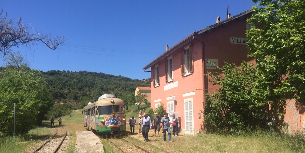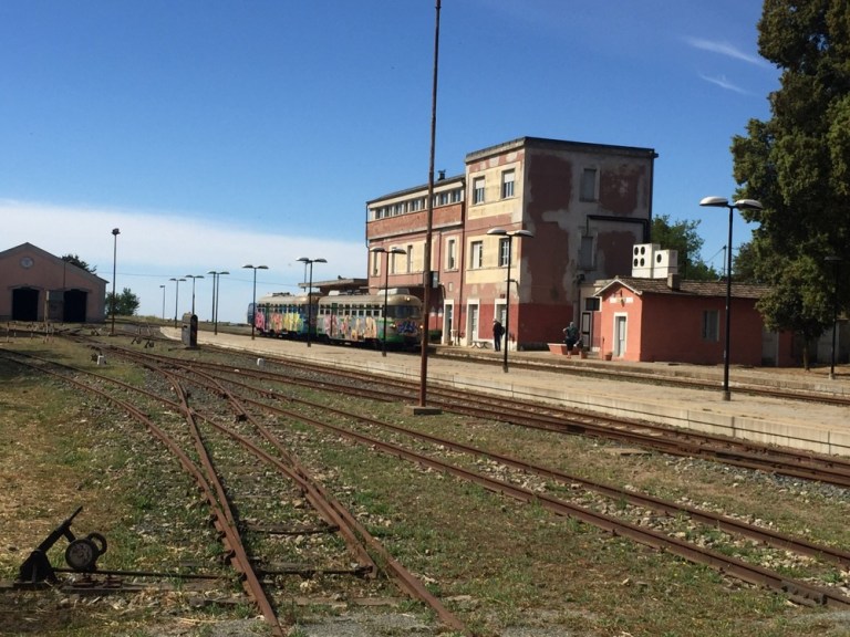 60 Kilometer Richtung Norden nach Mandas. Kaffeepause. Anschliessend 5 Fussminuten zum Bahnhof wo uns unzählige Bahnangestellte und 2 Dieselschienenbusse erwarten.