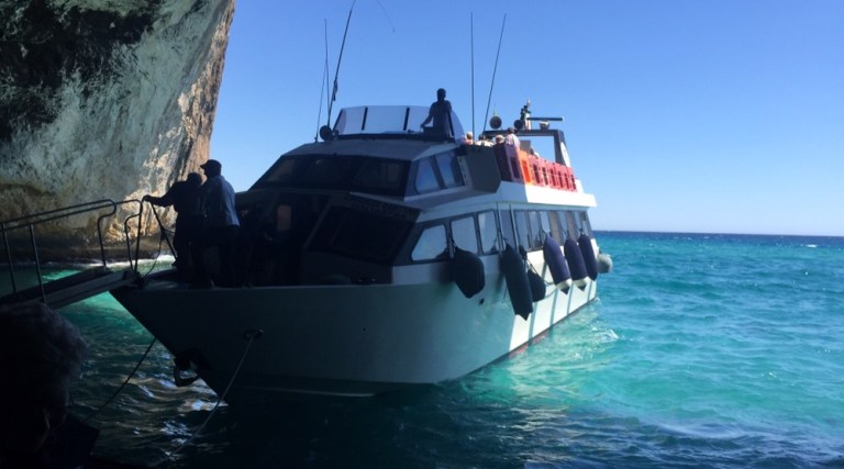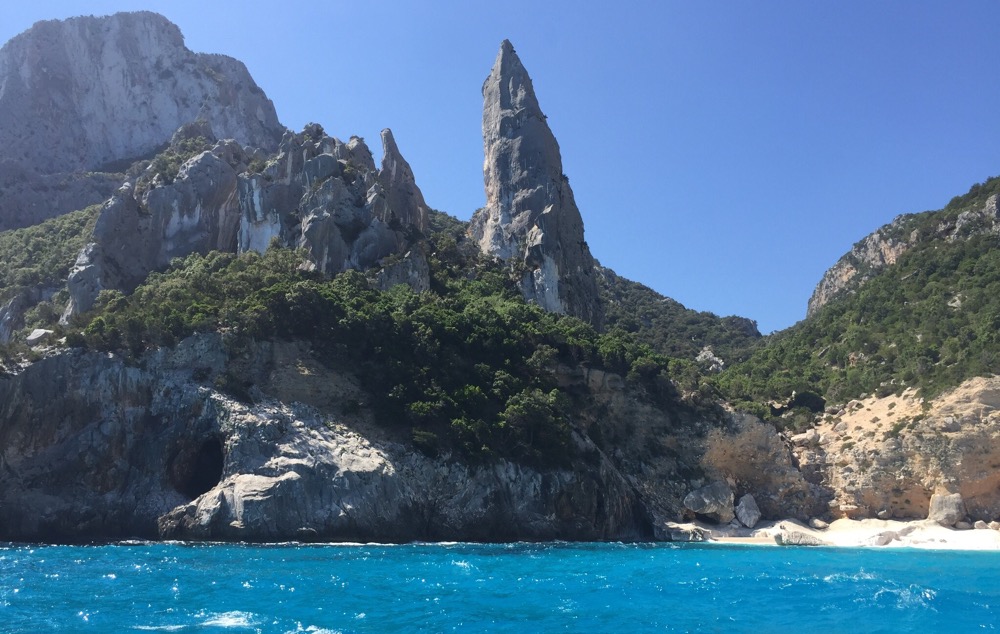 Anschliessend Weiterfahrt nach Cala Gonone einem kleinen Badeort, in einer offenen Nussschale. Der Käpt’n fährt wie eine angesengte Sau, ohne Rücksicht auf Wellen und Passagiere