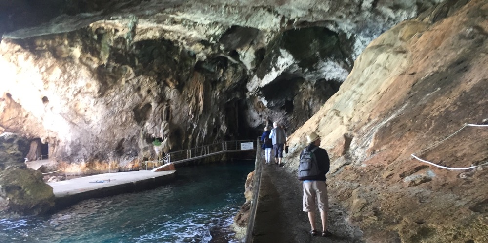 Das Aussteigen wirst echt kribbelig. Zu Fuss auf gesicherten Stegen besichtigen wir unter Führung diese Grotte. Leider ist Fotografieren nicht erlaubt, dies würde den Wänden der Grotte Schaden zufügen, instruiert die Führerin. Dass die Grotte aber 10 Stunden täglich von starken, warmen Scheinwerfern und von den Taschenlampen der Führerinnen angeleuchtet werden, macht offenbar nichts aus!?