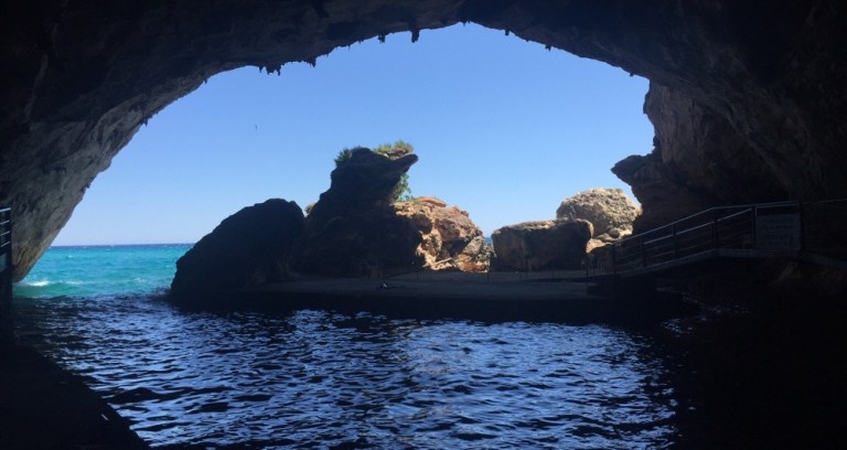 Nach eindreiviertel Stunden Schifffahrt erreichen wir den Eingang zur Grotta del Bue Marino, zu deutsch Meerochsen- bzw Mönchsrobben-Grotte (https://de.m.wikipedia.org/wiki/Grotta_del_Bue_Marino).