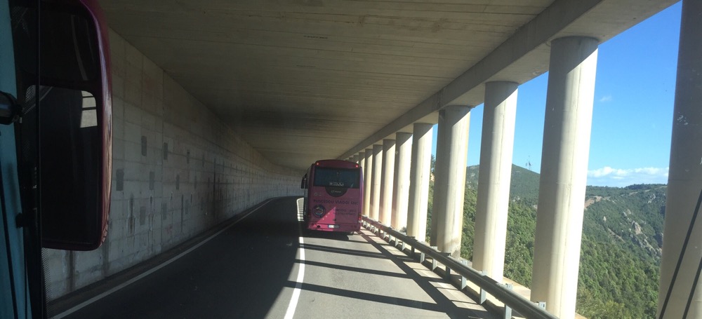Im Reisecar fahren wir über die Panoramastrasse zurück nach Arbatax. Diese grossartige Strasse führt auf über 1000 m Höhe, wiederum durch den Nationalpark Golf von Orosei und Gennargentu (http://www.parcogennargentu.it/) bzw (http://www.parks.it/indice/PN/Gindex.php/).