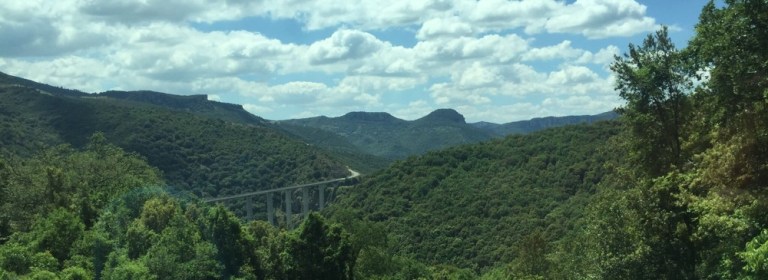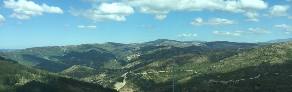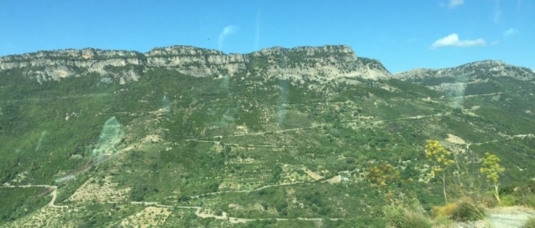 Den ersten Pass auf knapp 1000 Metern über Meer haben wir bald überwunden. Gegenüber sehen wir die schöne Gebirgswelt, die mich irgendwie an amerikanische Felsenketten erinnert.