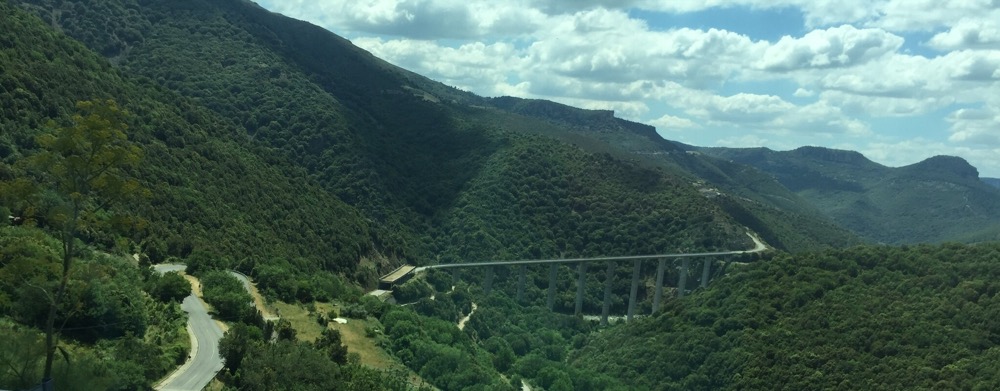 Halb 9 fahren wir los. Da unsere Reiseleiterin Uschi (40 Jahre Sardinien und immer noch miserable Geografie-, Lebens- und Landeskenntnisse) vor 2 Tagen unbedingt eine eigene, im Abendlicht nicht sehr sehenswerte Route fahren wollte, müssen wir heute das Verpasste nachholen und über Lanusei und Gairo ins Gebirge rollen.