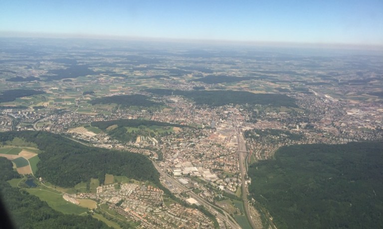 13 Uhr Einchecken in Zürichs Flughafen für Flug 2315 der Germania nach Rostock. Nach dem Passieren der Sicherheitskontrollen essen wir was Salatiges (mein heutiges Frühstück). Einsteigen ab 13.35 Uhr. Bald schon rollen wir los, stehen dann aber während über einer Viertelstunde vor der Startbahn gegenüber Rümlang, zuviele Flugzeuge munterwegs. Tolles Flugwetter, keine Wolke am Himmel.