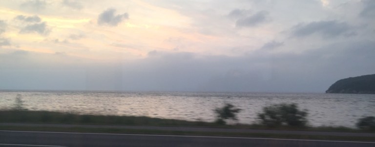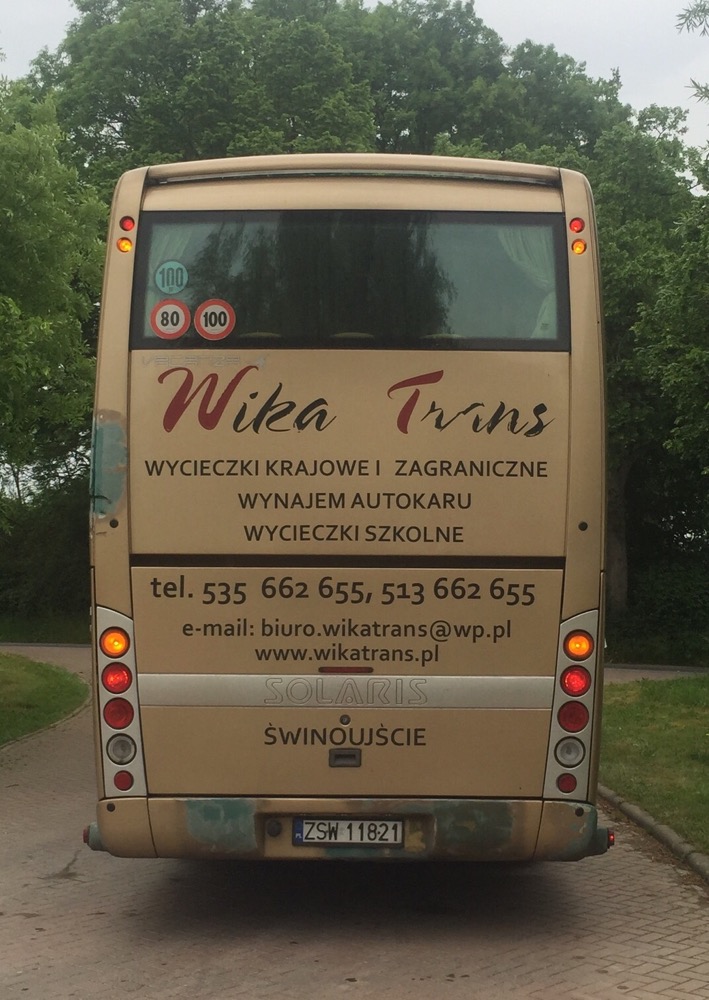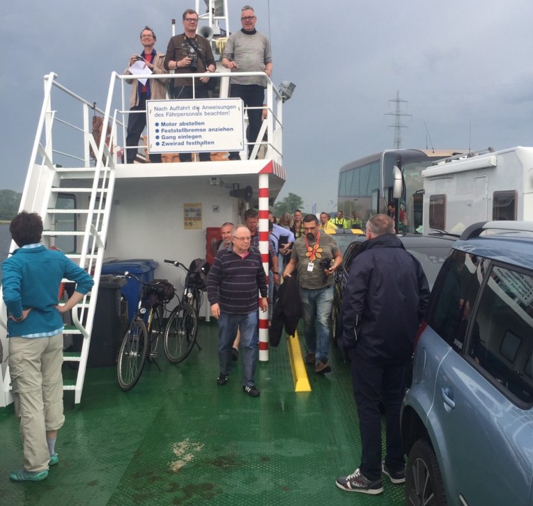 Knapp eine Stunde nach der Abfahrt erreichen wir Stralsund, bleiben aber noch sitzen. 2 Stationen später, am ersten Halt nach dem Passieren des Rügendamms, steigen wir in Altefähr aus. Unten, vor dem Bahnhof wartet ein polnischer Reisebus auf uns.