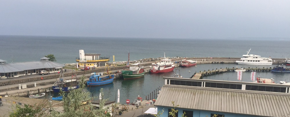 Kurz vor 18 Uhr fahren wir die letzten paar Kilometer runter nach Sassnitz. Die Müden fahren mit dem nächsten Zug heim nach Rostock, während wir Erlebnishungrigen mit knurrenden Mägen uns zu Fuss in die Stadt bzw runter zum Hafen begeben. Unzählige Fischgaststätten locken!