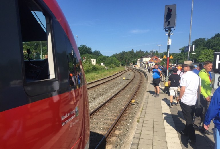 Kurz nach 9 Uhr mit der Regionalbahn nach Bad Doberan.