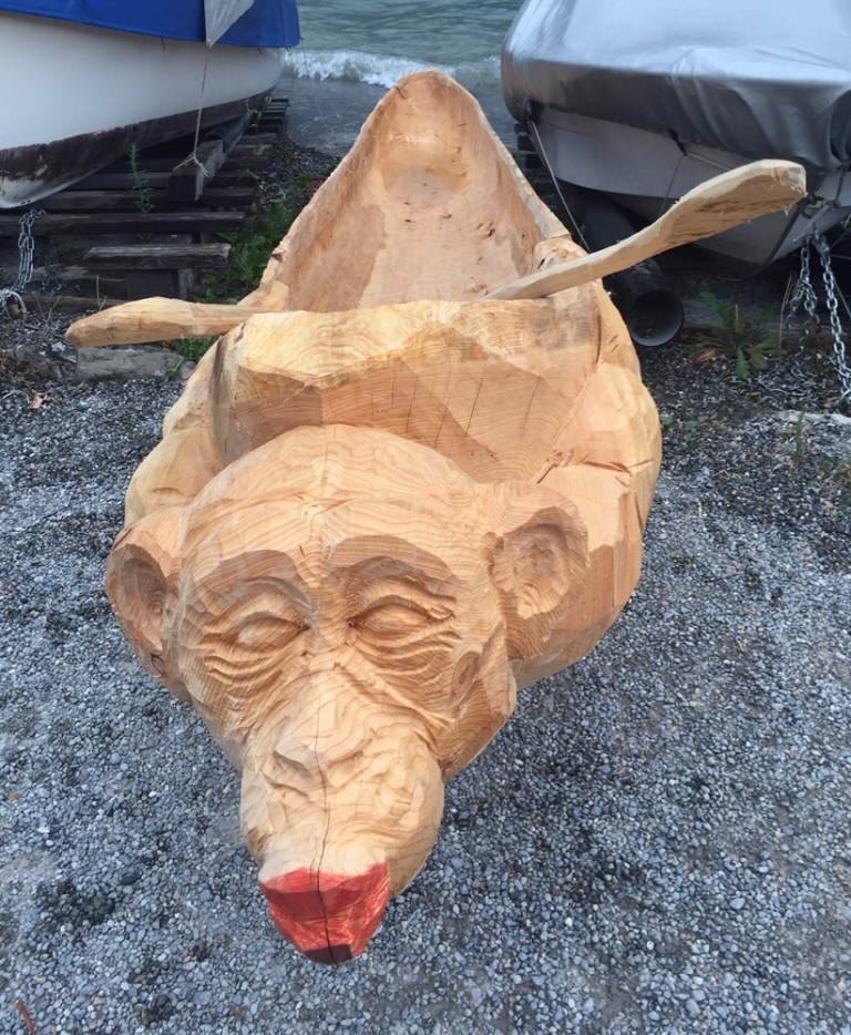 Nur noch das regelmäßige Schlagen des großen Eisens für die Aushöhlung ist Bananen-Kanus ist zu hören. Ob es wohl schwimmen und ruhig im Brienzersee dahingleiten wird?