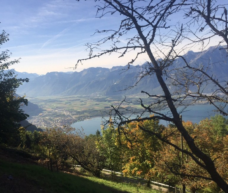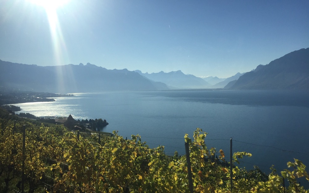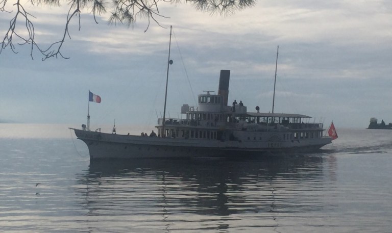 Unterdessen ist es kurz nach 14 Uhr. Auch im Restaurant und auf der Sonnenterasse des ****Hotel Majestic gegenüber von Bahnhof gibt es nichts mehr zu essen, typisch Welschschweiz! Also runter an den See. Auf der sonnenbeschienen Terrasse des See-Restaurants ‚Le Métropole‘ essen wir einen Vorspeisensalat und eine riesige Pizza, dazu nebst Wasser einen roten, offenen Ollon (5.- je dl).
