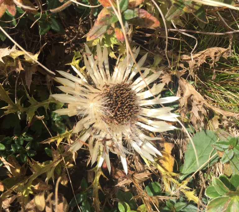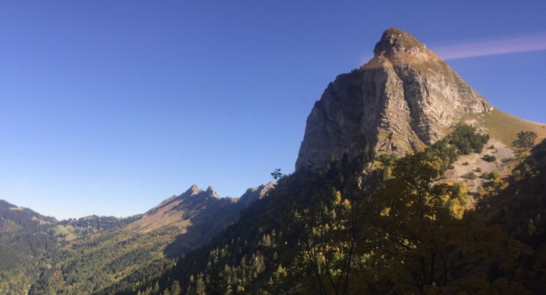 Während der Bergfahrt wird uns bewusst, dass der Herbst endgültig angekommen ist: die ehemals grünen Bergmatten sind kurz abgeweidet und die Laubbäume leuchten gelb-rot! Rund um die Bergstation stinkt es fürchterlich nach altem Fritteusen-Oel. Also sofort weiter zum Nord-‚Gipfel‘ wo sich die Aussicht nach Westen,