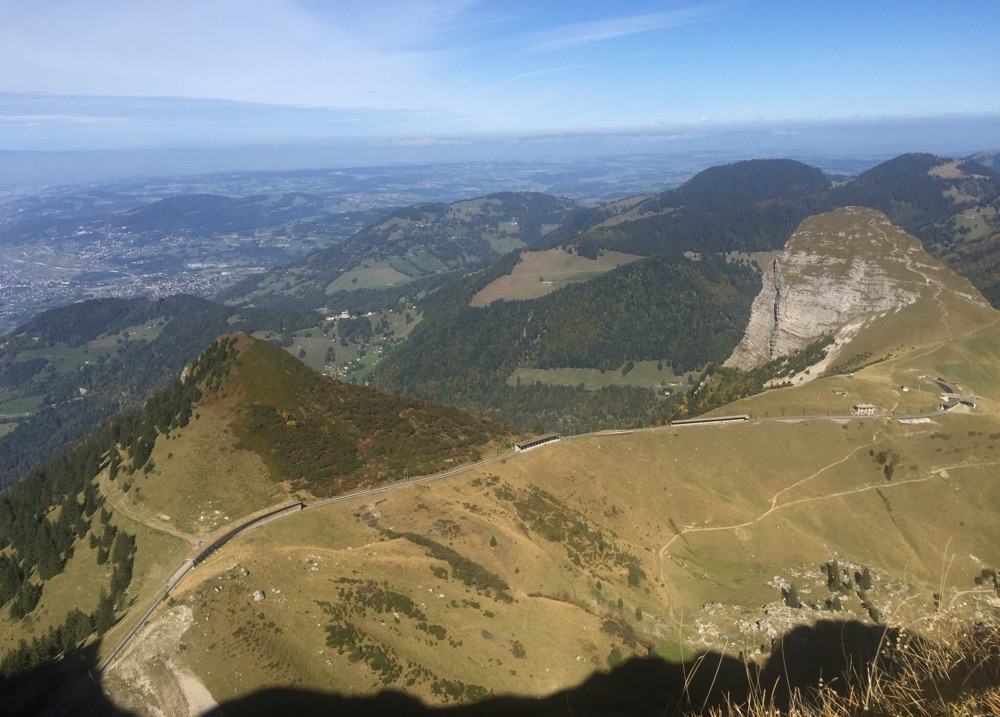 Erneutes Umsteigen für eine 6 Minutenfahrt nach Montreux. Nach einer kurzen Bisi- und Kafipause fahren wir um 10.18 mit der Zahnradbahn MTGN (https://de.m.wikipedia.org/wiki/Transports_Montreux–Vevey–Riviera) über Glion – Caux auf den 2024 Meter hohen Felsensporn des Rochers-de-Naye (https://de.m.wikipedia.org/wiki/Rochers_de_Naye).