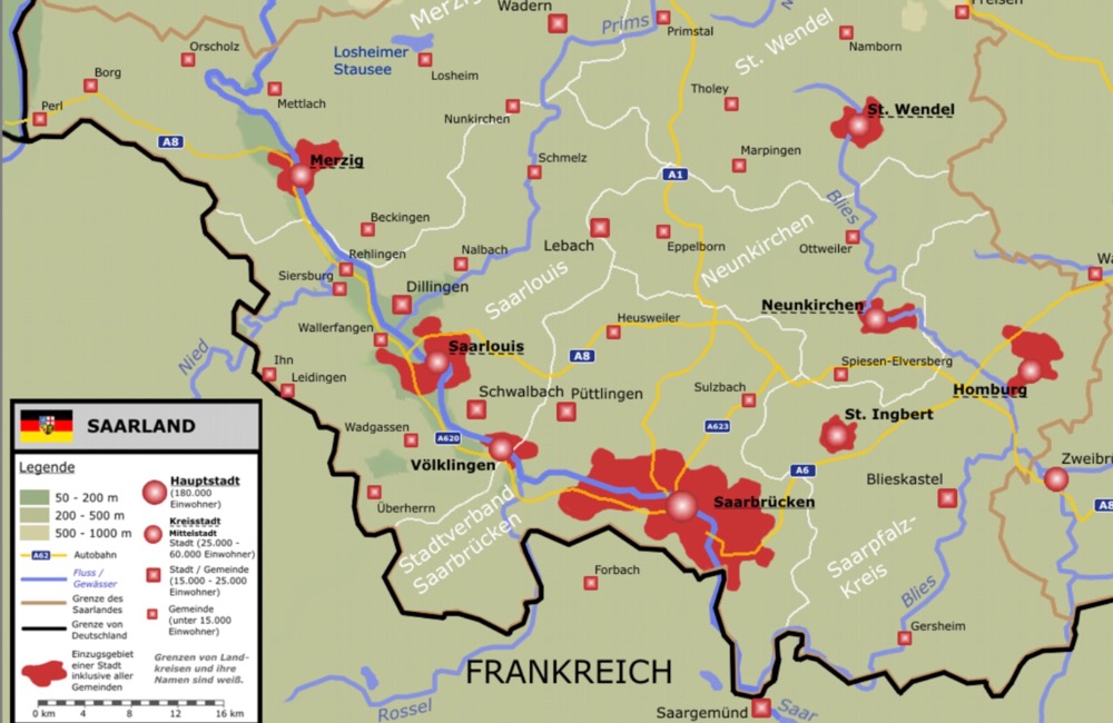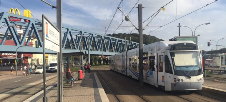 Habe wieder mal lange ausgeschlafen trotz dem gegen 7 Uhr startenden und immer mehr zunehmenden Strassenlärm draußen vor dem Hotel. Gegen 9 stehe ich dann doch auf, zumal der Himmel sich immer mehr abdeckt. Nach einem kurzen und kleinen Frühstück bummle ich durch die Stadt und zum Bahnhof hoch. Ich will der Saar entlang, abwärts, gen Norden, zur Saarschleife fahren und diese besichtigen. Das städtische Tourismusbüro wie auch die Bahn sind sich nicht sicher von woher am besten der Zugang erfolgen soll.