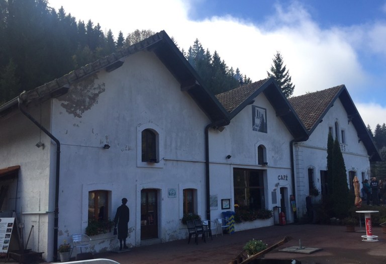 Auf der Rückfahrt machen wir in Môtiers einen Zwischenhalt und besuchen die