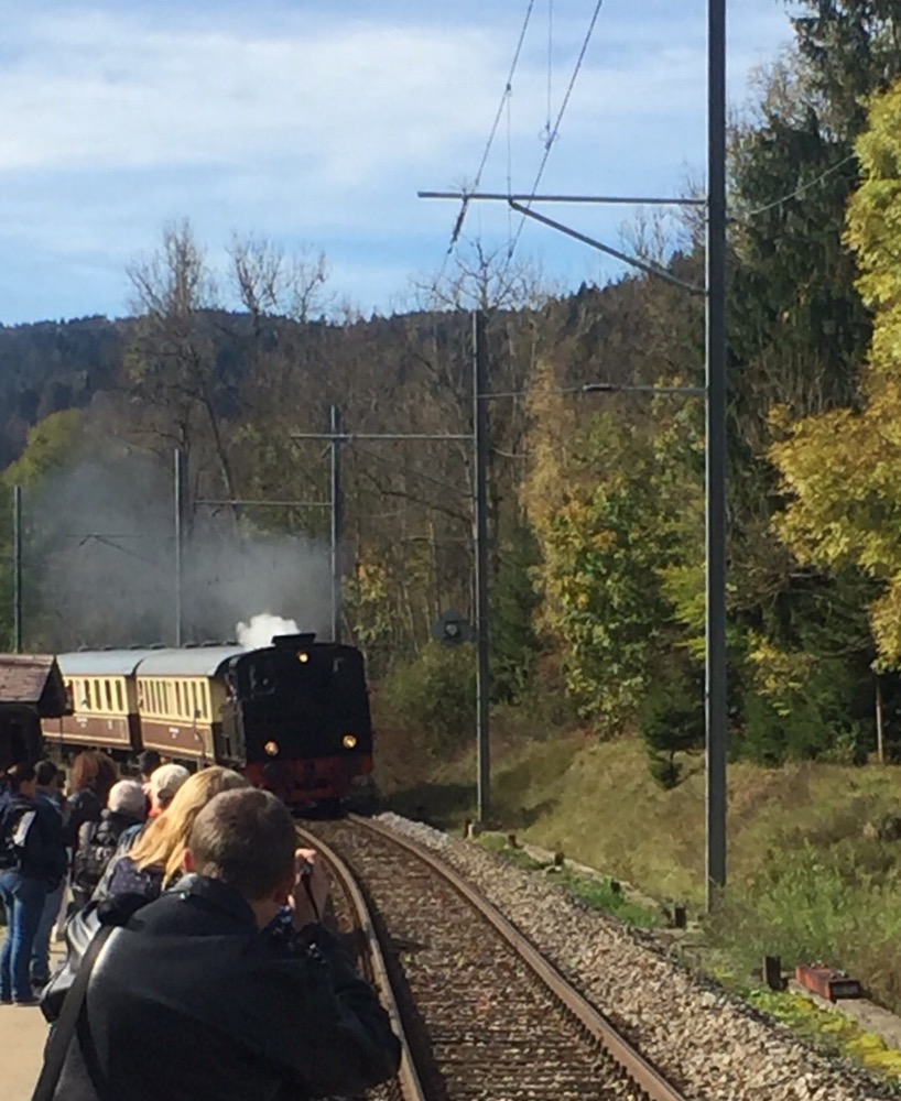 Im November wird PinkRail 20 Jahre alt. Dies feiern wir mit einem Erlebnistag im Neuenburger Jura. Zuerst fahren wir mit einem elektrischen Nostalgie-Extrazug der RVT Historique von Neuchâtel