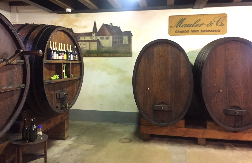 Sektkellerei Mauler, welche sich in einem alten Benediktinerkloster befindet. Zu der geführten Besichtigung gehört selbstverständlich auch eine Degustation der hergestellten Vins Mousseux.