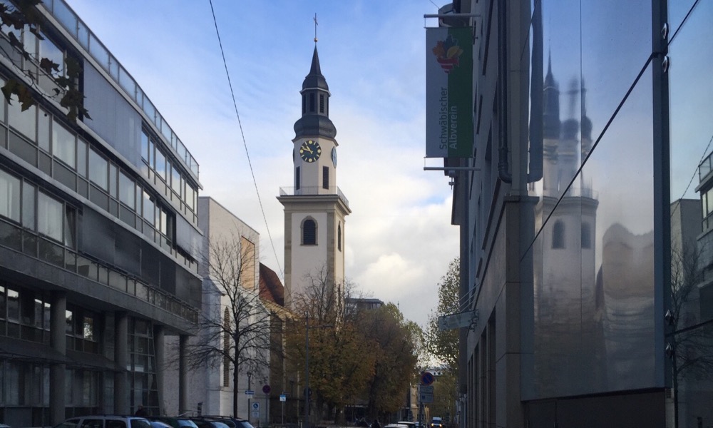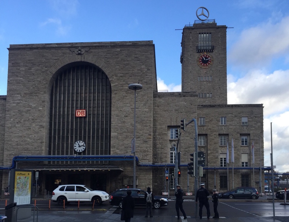 17:16 Uhr fahren wir mit der S-Bahn nach Stuttgart. Verabschiedung, in Mitte steigen wir zu Dritt aus und laufen durch die Königstraße und am neuen Schloss vorbei.