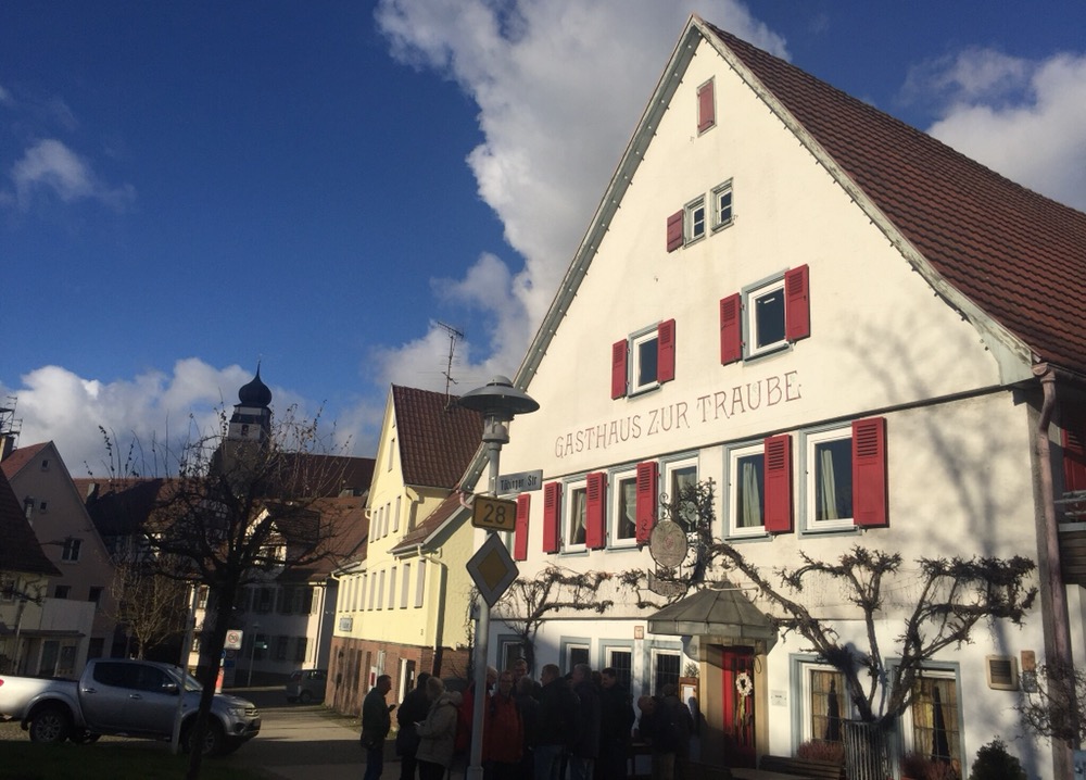 Wir spazieren eine gemütliche Viertelstunde entlang der Hauptstraße zum Gasthaus zur Traube.