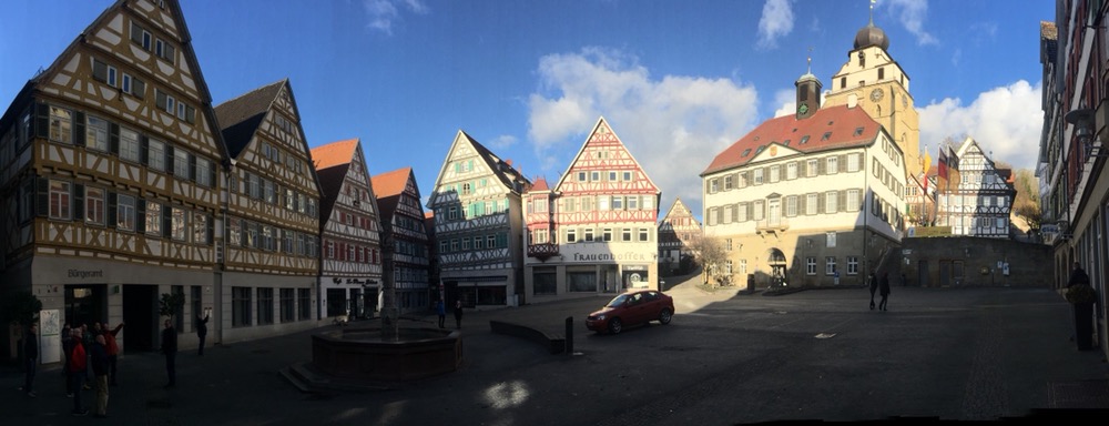 In zwei Wochen wird auf dem Platz der Weihnachtsmarkt starten. Jetzt können wir die schönen Riegelhäuser und die Stiftskirche noch ungestört bestaunen.