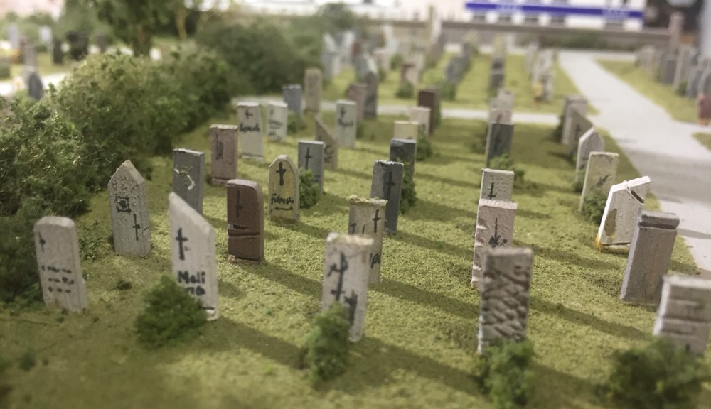 Kleines Beispiel: Es gibt auf der Anlage zwei Friedhöfe, mit 2000 beziehungsweise 4000 individuell gestalteten und angeschriebenen Grabsteinen.