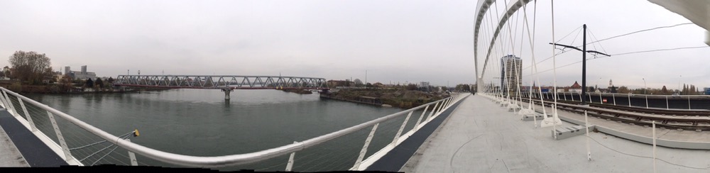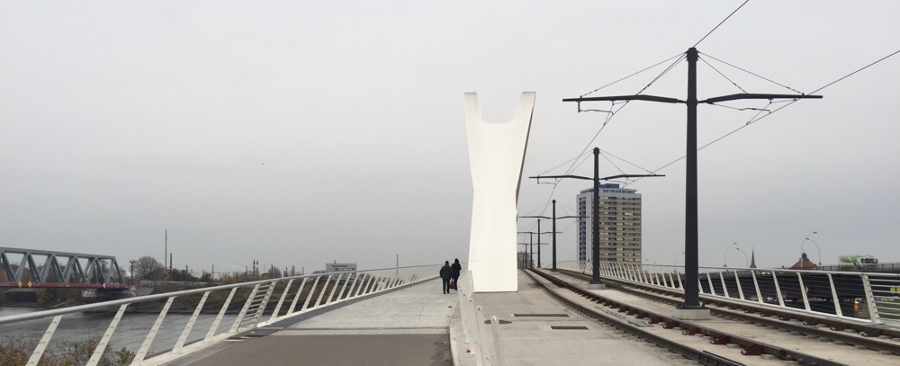 leider beginnt es zu tröpfeln, dazu bläst ein eisig kalter Wind. Zu Fuss zurück, über die Strassenbahn-Fussgänger-Radfahrerbrücke nach Deutschland.
