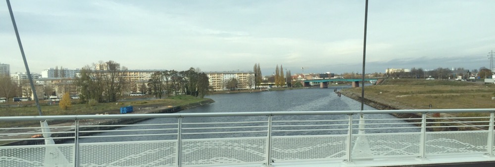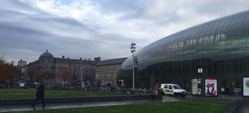 Die ganze Nacht hat es geschüttet und gestürmt. Kurz nach 8 Uhr hellt der Himmel aber auf. Nach einem kleinen bürgerlichen Hotelfrühstück, fahre ich gegen 10 Uhr mit der Tram über den Rhein und den Rheinlanal in neue Quartiere und in die Innenstadt von Strasbourg und bis zum Bahnhof.