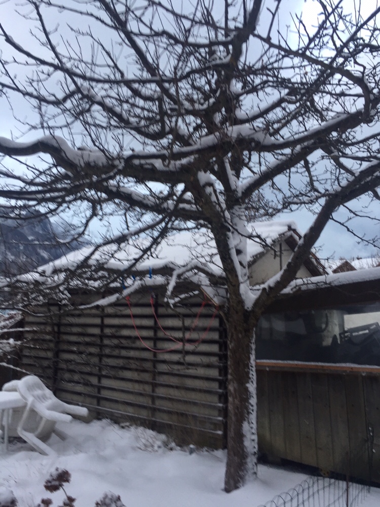 Über Nacht ist es eisig kalt geworden, der Wintersturm hat 20 cm Neuschnee hingeworfen. Herrlich diese stille, weisse Landschaft!
