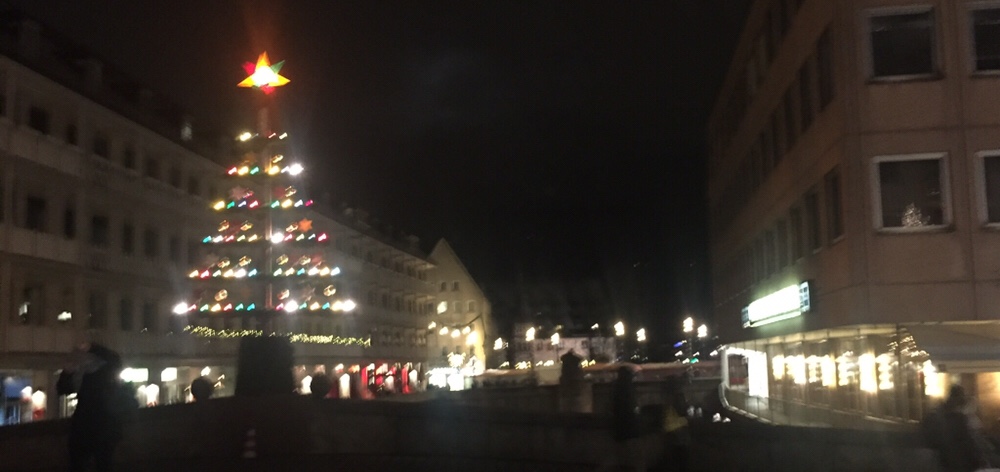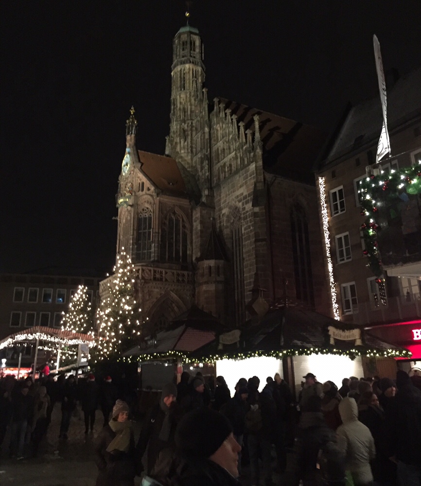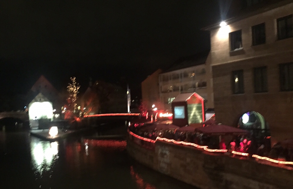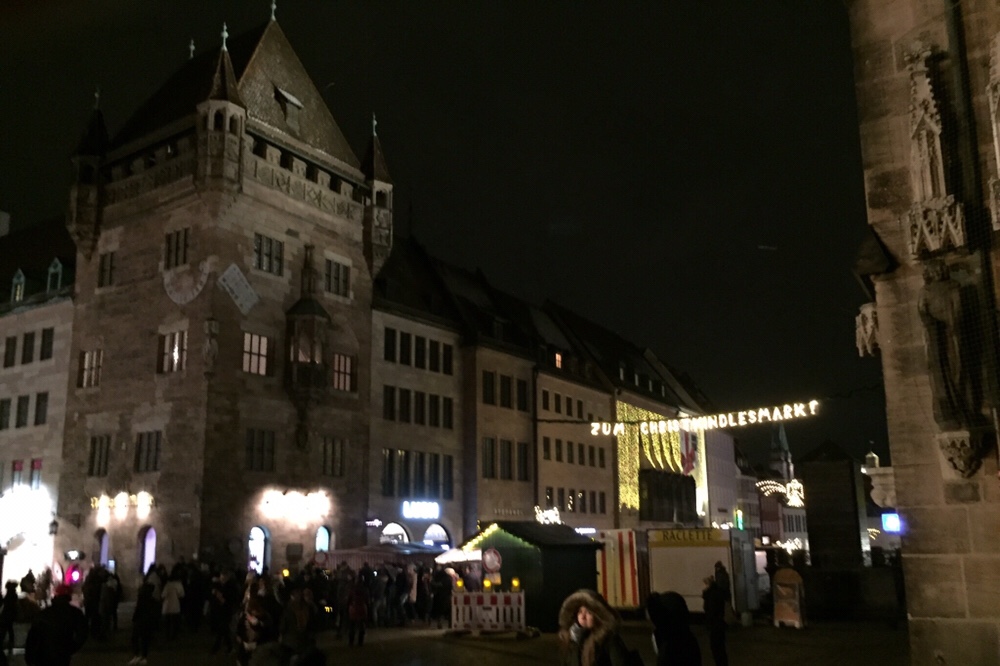 20:18 Uhr in Nürnberg. Mit Gepäck ins Hotel und sogleich Fußmarsch zum Christkindlesmarkt der um 21 Uhr schon schließt.