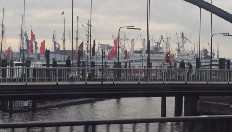 auf der Zollbrücke zur Einfahrt in die Speicherstadt schrecke ich hoch. Muss raus an die frische Luft.