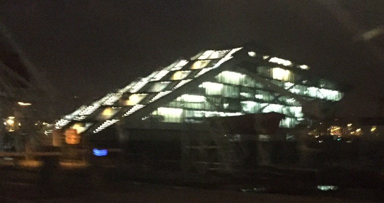 Dockland auf den Wasserbus um. Schöne Wasserreise Elbeaufwärts. Bin Draussen, geniesse den Fahrwind und das ständige Ausbalancieren der durch den Wellenschlag verursachten Schaukelbewegungen. Es dunkelt schon früh, überall gehen die Lichter an!