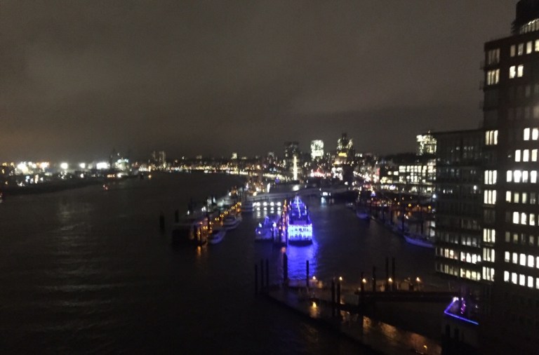 17:00 Uhr wartet Gotthard am Ausgang des MiWuLa. Trotz Regenwetter spazieren wir zur Elbphilharmonie und stehen alsbald auf der Plaza in 37 Metern Höhe.