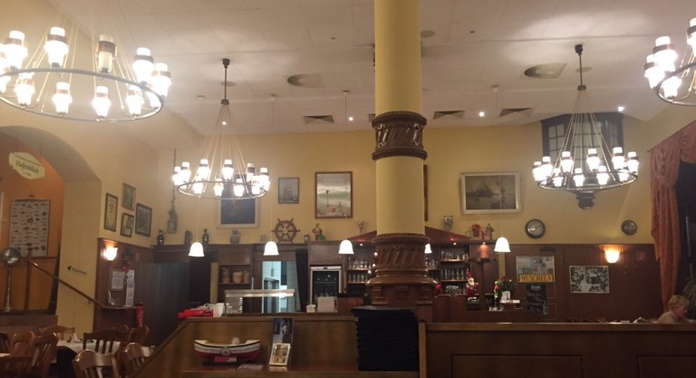 Im rustikalen Restaurant im Erdgeschoss haben wir schon bald herrliche Sachen auf dem Tisch. Nach Aalsuppe auf Hamburgerart geniesse ich gekochten Aal an einer Dill-Senfsauce. Ich bin so fasziniert von den Speisen, dass ich prompt vergesse eine Foto zu machen.