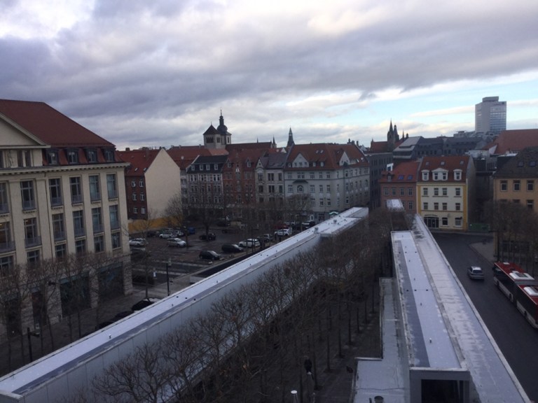 13.21 Ankunft an meinem Tagesziel. Ich habe mir im IntercityHotel ein Zimmer reserviert zum horrenden Preis von 155 €uro ohne Frühstück (+17€). Die Tatsache, dass es in der Innenstadt von Erfurt nur wenige Hotels gibt und gegenwärtig der weitherum bekannte Weihnachtsmarkt stattfindet, wird gnadenlos ausgenutzt!