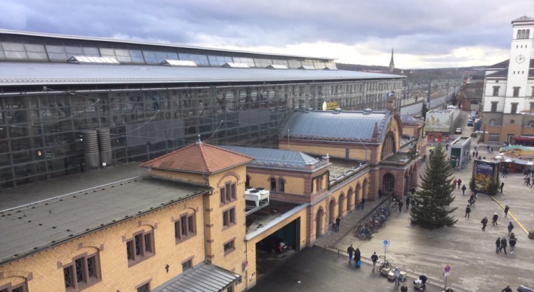 Göttingen an um 10.38, Aussteigen, Bahnhofsspaziergang, Bäckereibesuch, Glühwein auf dem Bahnhofsvorplatz.