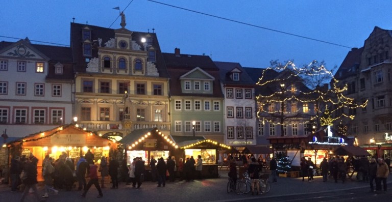 Auch hier in Erfurt ist es schon früh, gegen 16 Uhr dunkel.
